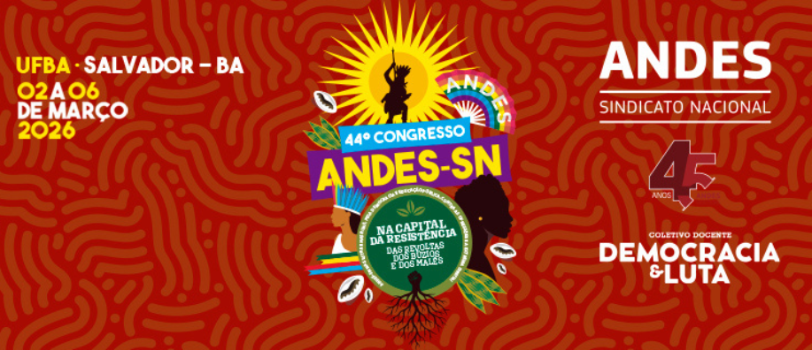 44º Congresso será realizado na UFBA, de 2 a 6 de março de 2026, e reunirá docentes de todo o país para deliberações sobre pautas importantes da categoria Salvador sediará, entre os dias 2 e 6 de março de 2026, o 44º...